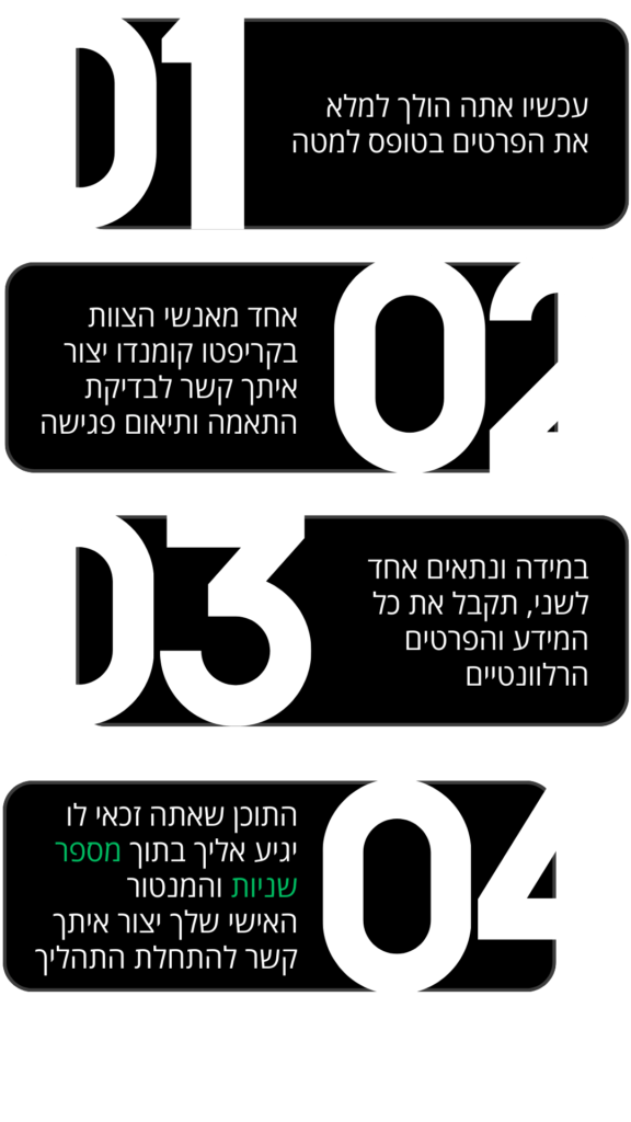 מלא את הטופס ונחזור אליך עם כל הפרטים + בונוס בשווי 497 ש"ח במתנה!